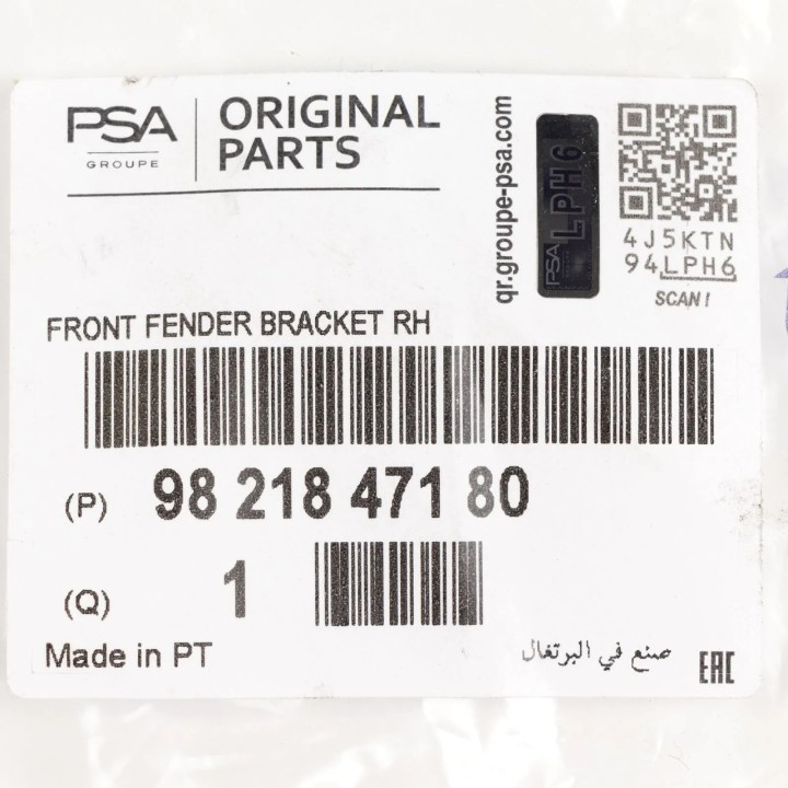 Soporte derecho de parachoques delantero original Citroën Berlingo a partir del año 2018 REF 9821847180: