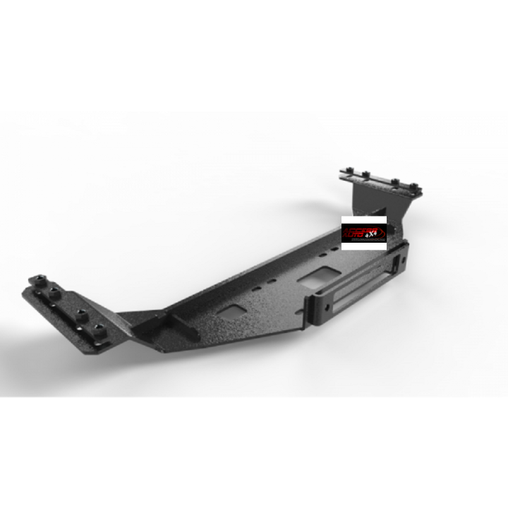 Placa de montaje de cabrestante oculta bajo el parachoques de fábrica Mercedes Sprinter W906 NCV3 2014-2018. Se atornilla a los largueros del chasis del vehículo. Fabricado en un solo elemento soldado sin ninguna pieza atornillada. Esto ha permitido una alta resistencia, rigidez y bajo peso de este producto. La instalación requirió perforar 8 agujeros desde abajo en los extremos de los largueros del chasis. El refuerzo del parachoques permanece en el coche, pero debe despejarse por la parte inferior según el tamaño del cabrestante utilizado. Fabricado en chapa de acero de construcción de 6 mm de espesor. Granallado y termolacado según una tecnología de dos capas con estructura. Dispone de un recorte bajo el tambor del cabrestante para facilitar la eliminación de la suciedad del cable. Peso aprox. 11,5 kg