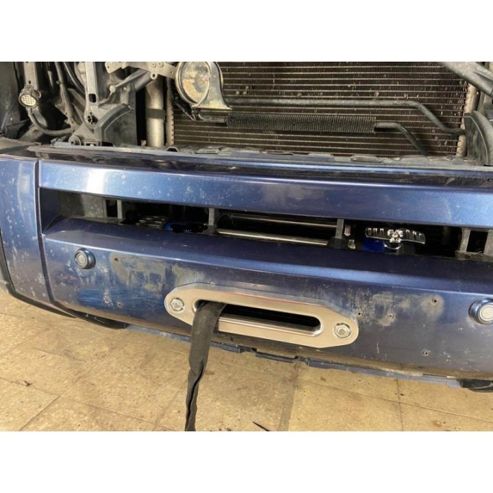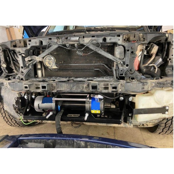 Placa de montaje del cabrestante Land Rover Discovery 3 2004-2009 completamente debajo del parachoques original. Montado de fábrica, los orificios en el chasis del vehículo solo deben perforarse 2 mm. En lugar de la barra del parachoques entre los largueros. Además, se incluyen el depósito del lavaparabrisas y el conjunto de la electroválvula de suspensión. Estos elementos permiten su instalación a nivel de la placa. Fabricado en acero estructural de 6 mm de espesor. Granallado y recubrimiento en polvo con tecnología texturizada de doble capa. Peso aprox. 12,1 kg.