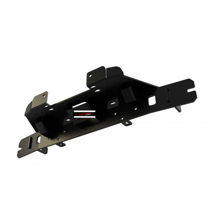 La instalación no requiere soldadura ni perforación en el chasis del vehículo. ¡Tampoco requiere cortarlo! Atornillado en los orificios de fábrica. Fabricado en chapa de acero estructural de 6 mm y 8 mm de espesor. Granallado y recubrimiento en polvo con tecnología texturizada de doble capa. La placa de montaje de este modelo de coche se monta en lugar de la barra debajo del parachoques. Peso aprox. 15,1 kg.