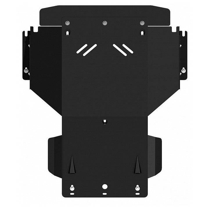 Esta placa de protección es de aluminio de calidad de 5 mm de espesor y se fija a los orificios originales del vehículo. Las aberturas de servicio en la placa de protección permiten el mantenimiento del vehículo sin desmontaje.