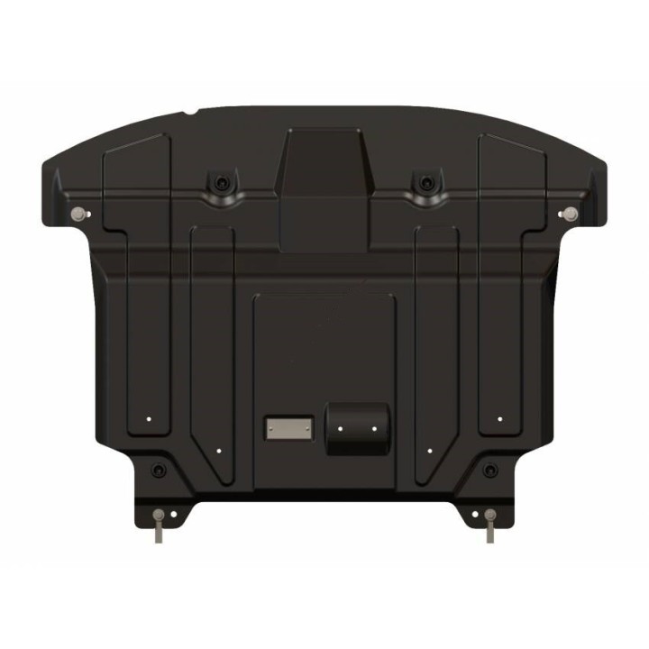 Esta placa de protección es de acero de calidad de 2 mm de espesor y se fija a los orificios originales del vehículo. Las aberturas de servicio en la placa de protección permiten el mantenimiento del vehículo sin desmontaje.