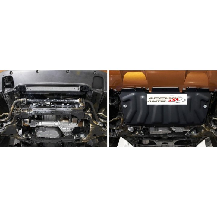 Esta placa protectora es de aluminio de calidad de 4 mm de espesor y se fija a los orificios originales del vehículo. Las aberturas de servicio en la placa protectora permiten el mantenimiento del vehículo sin desmontaje.