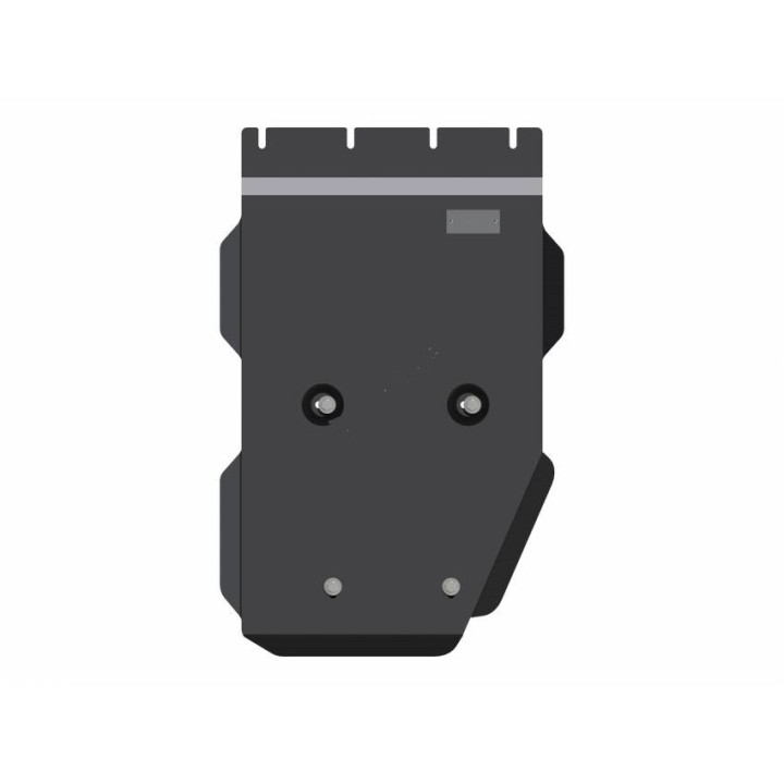 Esta placa de protección es de aluminio de calidad 5 mm de espesor y se fija a los orificios originales del vehículo. Las aberturas de servicio en la placa de protección permiten el mantenimiento del vehículo sin desmontaje.