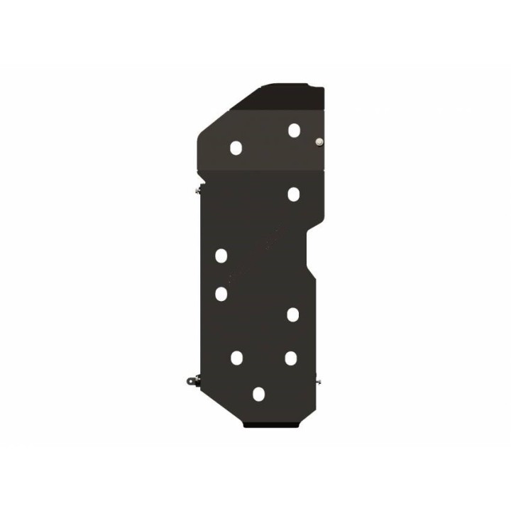 Esta placa protectora es de aluminio de calidad de 5 mm de espesor y se fija a los orificios originales del vehículo. Las aberturas de servicio en la placa protectora permiten el mantenimiento del vehículo sin desmontaje.