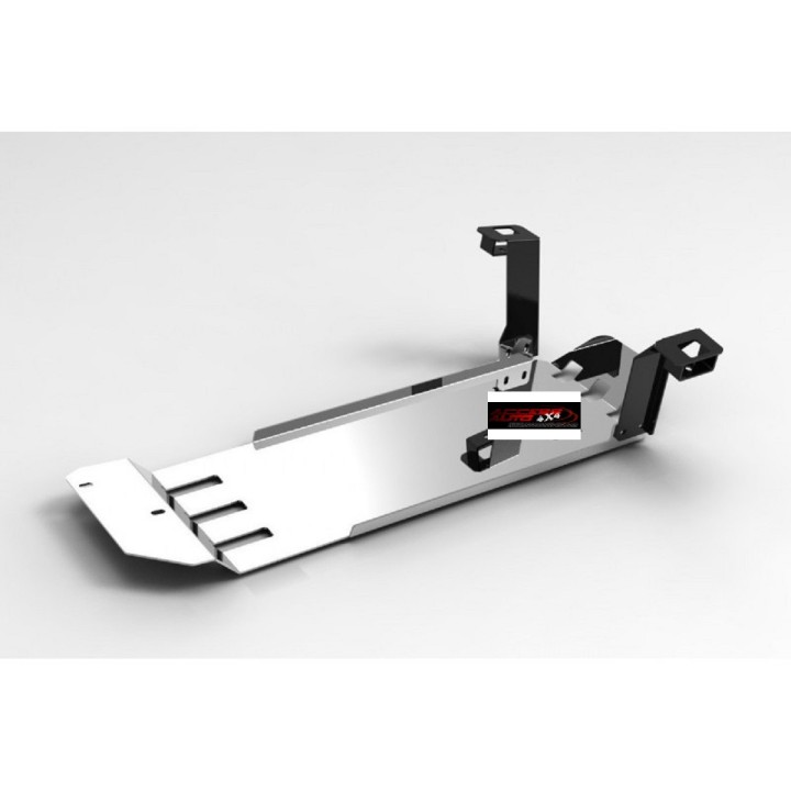 Esta placa de protección es de ALUMINIO de calidad de 6 mm de espesor y se fija a los orificios originales del vehículo. Las aberturas de servicio en la placa de protección permiten el mantenimiento del vehículo sin desmontaje.