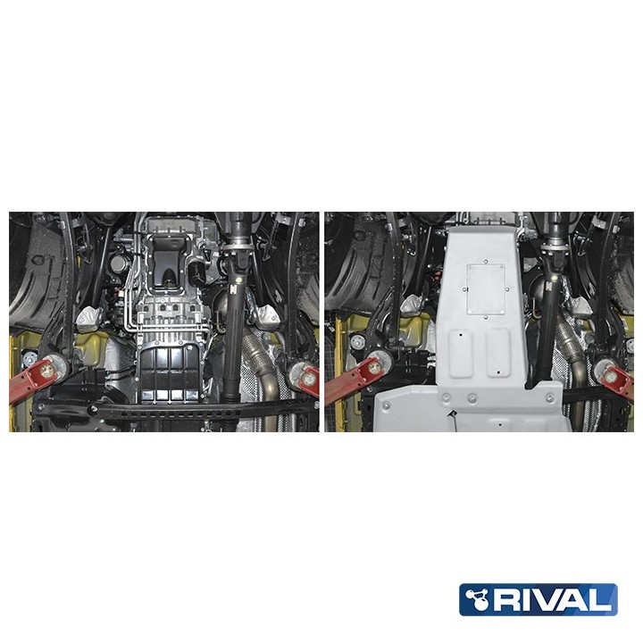 Las placas de protección de aluminio RIVAL están cortadas con láser de alta precisión y luego estampadas en frío. Estos blindajes ofrecen una solución ligera y ultrarresistente que garantizará la protección de todos los elementos sensibles debajo de su vehículo contra golpes, piedras o ramas.