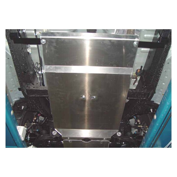 Cette plaque de protection est en aluminium de qualité 5 mm d'épaisseur et est fixée aux trous d'origine du véhicule. Les ouvertures de service dans la plaque de protection permettent l'entretien du véhicule sans démontage.