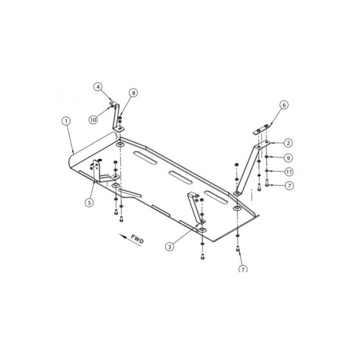 Esta placa de protección es de aluminio de calidad de 5 mm de espesor y se fija a los orificios originales del vehículo. Las aberturas de servicio en la placa de protección permiten el mantenimiento del vehículo sin desmontaje.