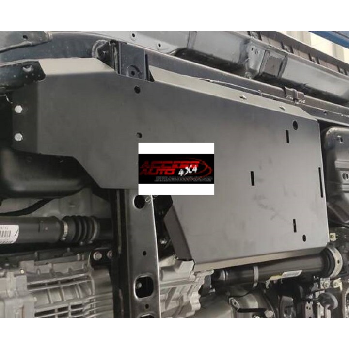 Esta placa protectora es de acero de calidad de 3 mm de espesor y se fija a los orificios originales del vehículo. Las aberturas de servicio en la placa protectora permiten el mantenimiento del vehículo sin desmontaje.