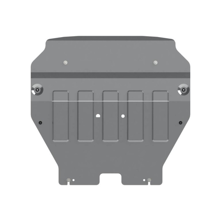 Esta placa de protección es de aluminio de calidad de 5 mm de espesor y se fija a los orificios originales del vehículo. Las aberturas de servicio en la placa de protección permiten el mantenimiento del vehículo sin desmontaje.