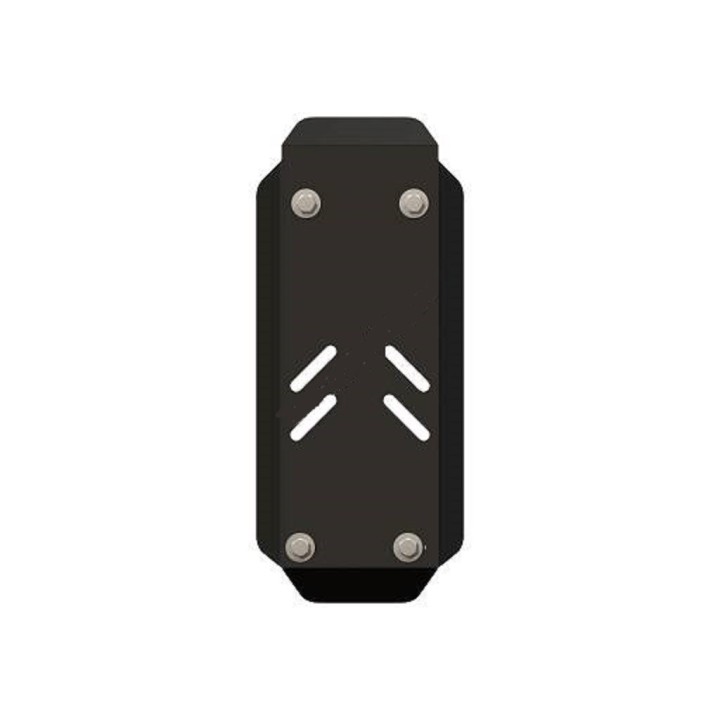 Esta placa de protección es de acero de calidad de 3 mm de espesor y se fija a los orificios originales del vehículo. Las aberturas de servicio en la placa de protección permiten el mantenimiento del vehículo sin desmontaje.