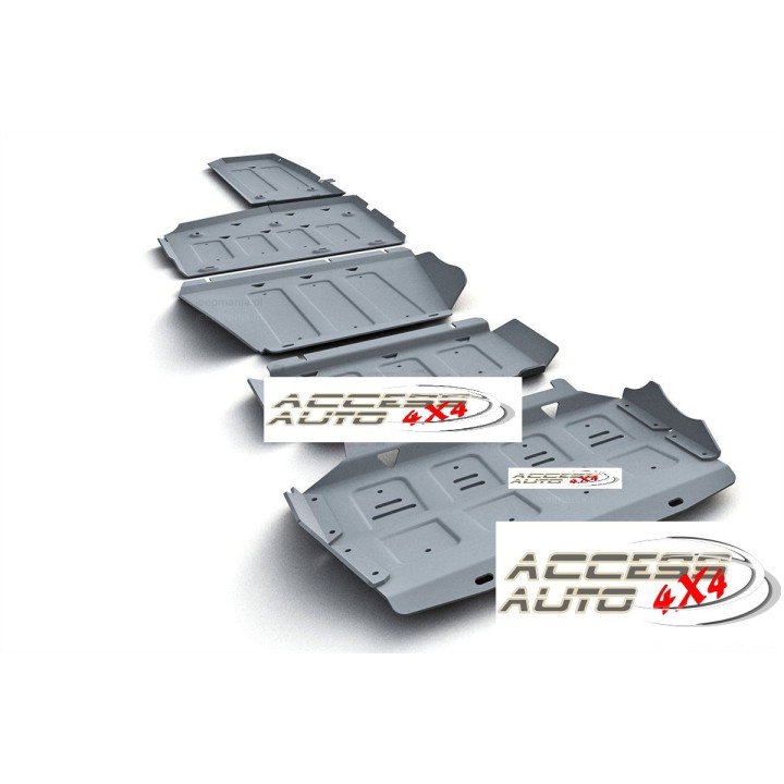 1 x protección de cárter Motor , 1 x protección de cárter caja de cambios , 1 x protección radiador , 1 x protección depósito de combustible , 1 x protección caja de transferencia 1 x protección diferencial , 1 x protección dirección .