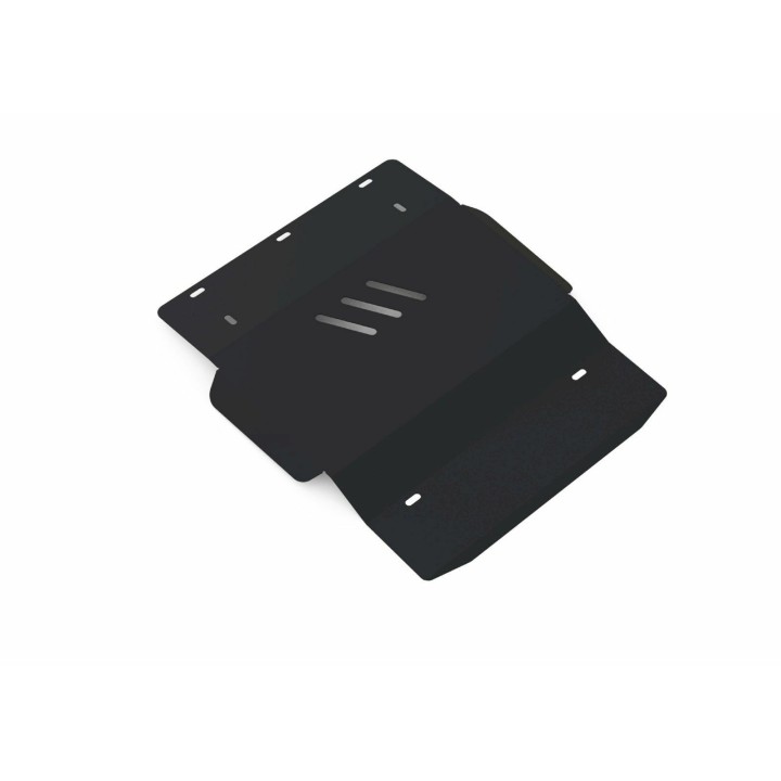 La protección bajo motor cortada con láser de alta calidad es de acero estampado y cuenta con un revestimiento de polvo de polímero negro.