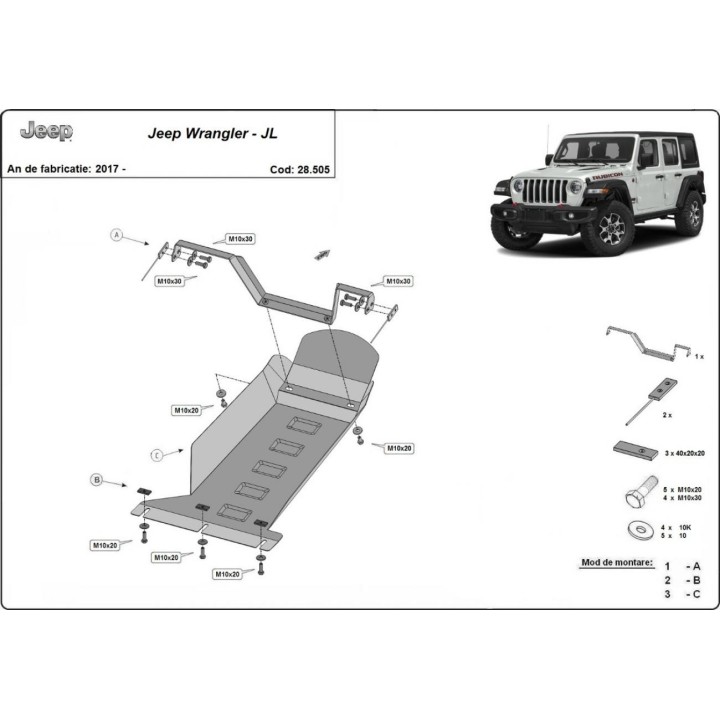 Este protector de motor es nuevo y se adapta perfectamente a todos los JEEP WRANGLER JL fabricados entre 2018 y 2025