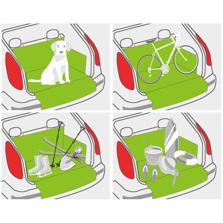 Lona de PVC, negra, específica, protege el maletero contra el polvo, el pelo de animales y la humedad como el agua, el aceite y varios productos químicos, así como arañazos y golpes. La laminación dura flexible con una superficie antideslizante es ignífuga, resistente al agua y fácil de limpiar. El revestimiento textil del maletero del coche está completamente cubierto. El revestimiento del maletero es fácil de insertar. Si no se usa, también es fácil de quitar y plegar. El revestimiento protege el maletero desde los reposacabezas hasta el umbral del maletero. Es muy adecuado para el transporte de cualquier objeto sucio. Según la superficie del maletero, el maletero se montará con cierres autoadherentes o botones a presión
