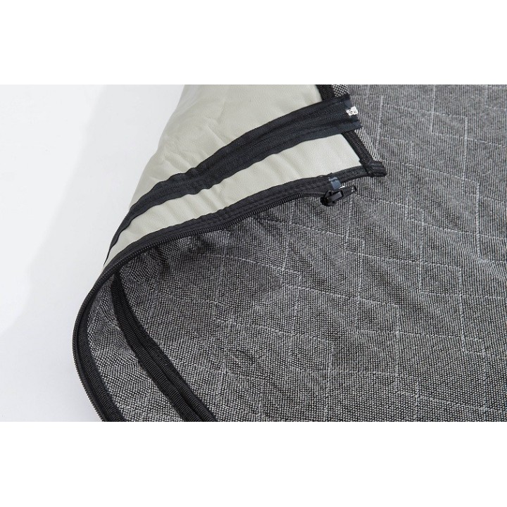 Protege la parte trasera de los asientos delanteros. Actúa como una barrera para evitar que el animal acceda a los asientos delanteros. Fabricado con tejidos técnicos muy resistentes, acoplados, acolchados y guateados.