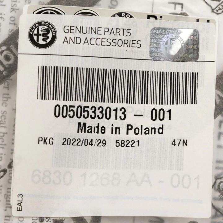 Hebilla de cinturón de seguridad Alfa Romeo Giulia 2016+ Alfa Romeo Stelvio 2017 REF 52226396