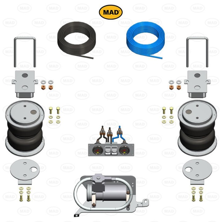 El sistema de aire inteligente MAD dispone de un sensor magnético que detecta toda la carga de peso en el vehículo y envía señales al compresor para aumentar o disminuir la presión en los fuelles de aire. Esto significa que, como conductor del vehículo, nunca tendrá que pensar en aumentar o disminuir la presión del aire usted mismo, sino que podrá concentrarse plenamente en la conducción. El sistema Smart Air está disponible para la mayoría de los kits de suspensión neumática que ofrecemos. Si desea decidir usted mismo la presión en el fuelle, debe elegir el sistema más simple con compresor.