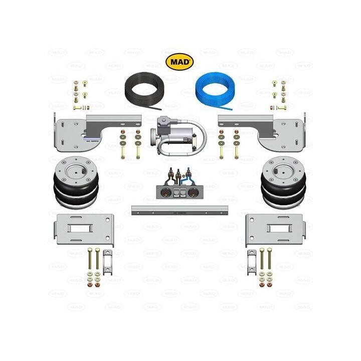 La suspensión neumática MAD está generalmente diseñada para funcionar como complemento de la suspensión trasera original del vehículo. Disponible en diferentes versiones, es adecuada para automovilistas que desean ajustar ellos mismos la dureza de su suspensión. La suspensión neumática está disponible con llenado manual, que requiere acceso a aire para inflar los fuelles a la presión deseada. También está disponible con compresor y manómetro, lo que le permite ajustar la presión usted mismo durante la conducción. También existe una suspensión neumática integral que compensa la suspensión original y ajusta automáticamente el nivel de carga. Al instalar una suspensión neumática en su coche, se beneficia de una experiencia de conducción totalmente diferente, ya sea que conduzca con o sin carga. Todas las suspensiones neumáticas son específicas para cada modelo de vehículo. Gracias a la suspensión neumática, también puede ajustar la altura de la parte trasera de su vehículo para aumentar la distancia al suelo. El confort y la seguridad son de un nivel superior con la suspensión neumática MAD.