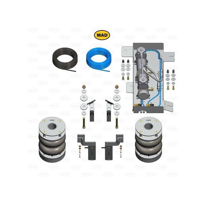 El sistema de suspensión MAD está diseñado para compensar los diferentes pesos de carga y para apoyar y asistir el sistema de suspensión original del coche para que la seguridad y el confort se mantengan incluso con la carga máxima permitida. La suspensión nunca aumenta el peso de carga máximo permitido para el coche.