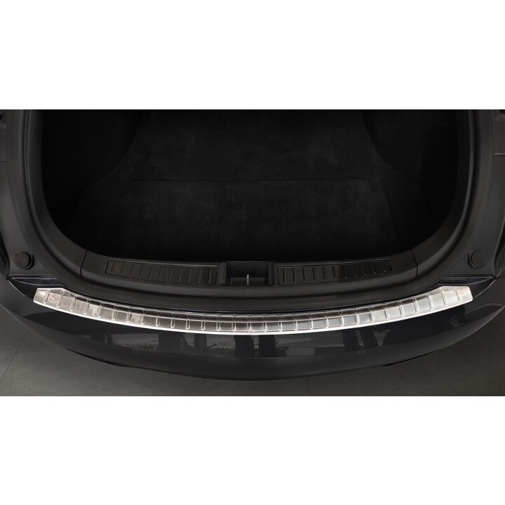 Esta protección de umbral de maletero con bordes protege eficazmente contra golpes y arañazos durante la carga y descarga. Gracias a su forma, como el patrón acanalado en la parte superior, está hecha de tal manera que se adapta perfectamente al diseño del TESLA MODEL S. Y si algún día desea reemplazar el protector después de un uso intensivo, también es posible. Será mucho más barato que volver a pintar su parachoques.