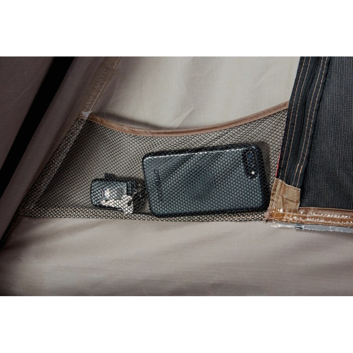 Esta tienda de techo será el verdadero corazón de su campamento base móvil, en cualquier estación. El cuerpo de la tienda cuenta con una construcción robusta de poliéster antidesgarro y un revestimiento impermeable. Su estructura es de aluminio, por lo que es ligera pero sólida. Al añadir un doble techo, ofrecerá una verdadera protección contra las inclemencias del tiempo. Las ventanas y puertas ultragrandes ofrecen vistas magníficas y una excelente ventilación, especialmente con su panel de malla que, si no duermes, te permitirá contar las estrellas. Su colchón de espuma gruesa (64 mm) que cubre todo el suelo asegura un confort acogedor durante toda la noche. Cuenta con una funda extraíble para facilitar la limpieza. Puede alojar hasta tres campistas. Las cuerdas y anillas en D en el suelo de la tienda permitirán colgar objetos o sujetar la tienda en caso de viento. Los puntos de ajuste están a media altura de la escalera, para una fácil instalación. El diseño fácil de desplegar requiere menos esfuerzo y deja más tiempo para disfrutar, práctico en la oscuridad o cuando llueve. Hay una función de cierre automático de la escalera que permite un cierre fácil. Montaje en el vehículo sin herramientas y con cerradura, fácil de instalar y rápido de plegar.