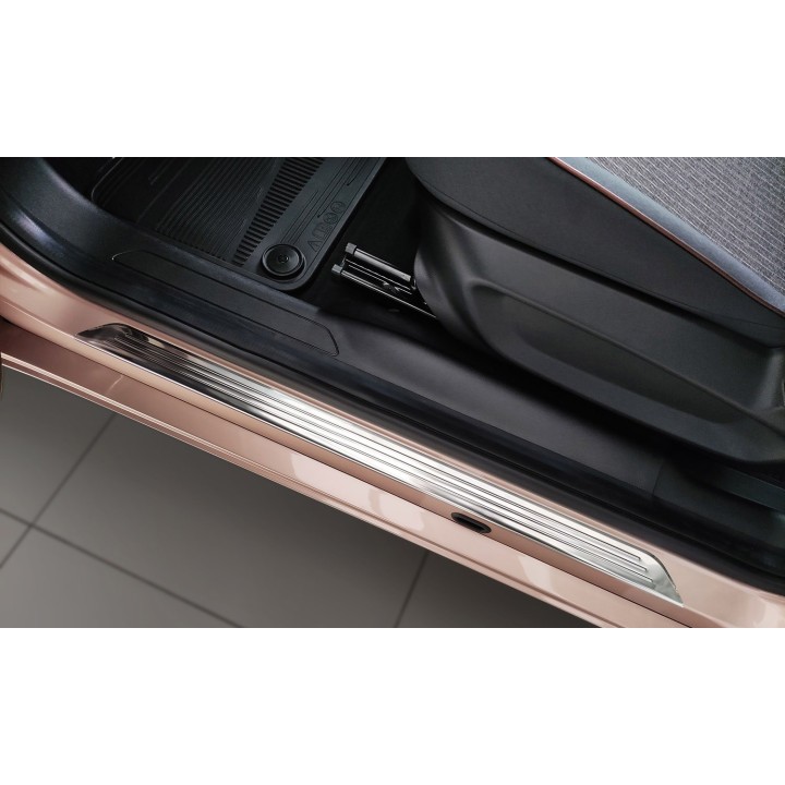 Los umbrales de puerta de ACERO INOXIDABLE protegen eficazmente los bordes de su FIAT 500 contra abolladuras y arañazos que pueden ocurrir al entrar y salir. Además, le dan a su FIAT 500 una apariencia de alta gama. Este accesorio de alta calidad está fabricado en Europa.