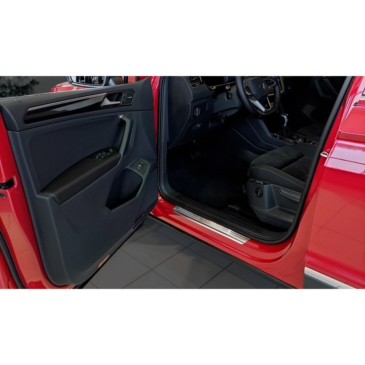 Los umbrales de puerta de ACERO INOXIDABLE protegen eficazmente los bordes de su VOLKSWAGEN TIGUAN contra golpes y arañazos que pueden ocurrir al entrar y salir. Además, le dan a su VOLKSWAGEN TIGUAN una apariencia de alta gama. Este accesorio de alta calidad está fabricado en Europa.