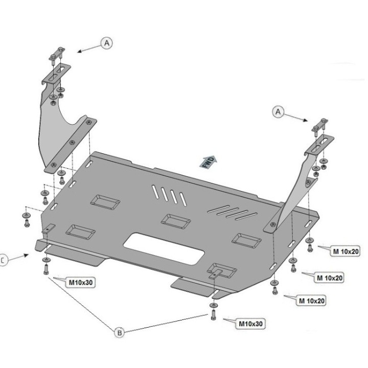 PROTEGE CARTER FORD TRANSIT 4x2 2013 2026 MOTEUR BV ALUMINIUM 3 mm :